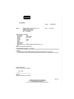 公司主要經營阻燃、遮光等功能性裝飾面料、遮光窗簾、卷簾、片簾、印花植絨布、墻布等生產及加工,阻燃可達到歐美國家等國際標準。